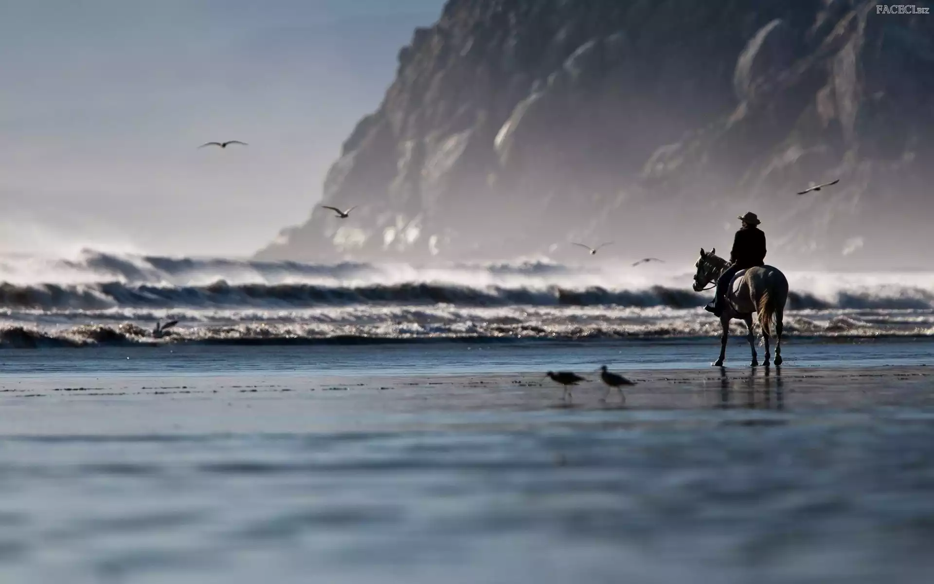Koń, Jeździec, Fale, Morze, Człowiek - faceci.biz